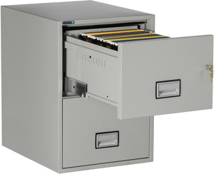 You won't have any trouble finding the right spot for the Phoenix LGL2W25. Compact, multifaceted, and lightweight, it will become the perfect match for your existing d̩ecor. Its dimensions (28"H x 19.875"W x 25"D) and spacious interior (10.5"H x 15" W x 20" D per drawer) make it an ideal option for those seeking a practical storage solution. Equipped with two drawers, this product also comes with a state-of-the-art high security lock and two keys. Due to its sophisticated lock bypass mechanism, users can leave certain drawers unlocked while keeping the rest locked.