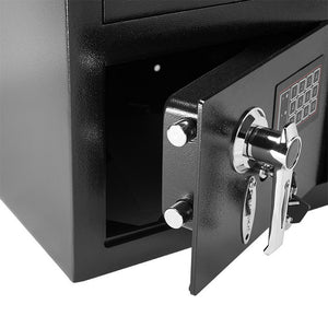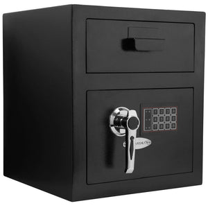 The Barska AX11932 Standard Keypad Depository Safe is designed for businesses that have a need for deposits into a safe via the front large slot, that cannot be taken back out again until the safe is opened. The slot is made for larger deposits such as money bags while allowing for cash, checks, etc. to be stored securely. This is a great option for businesses that need to make regular deposits such as bars, retail stores, etc.Features: