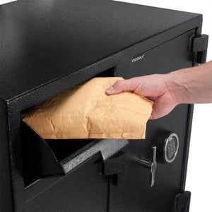 CLICK HERE to watch our video on “What to Do When Your Safe Arrives.”The Barska AX13316 Double Door Depository Safe is perfect for those that need to store cash trays and also make deposits. The right compartment is 26.50" high, 16.50" wide and 18.50" deep on the inside. It comes with 2 adjustable shelves. This large locker is designed to store a large volume of cash trays. The left compartment is used to drop deposits inside the safe. The drop drawer is protected by an anti-fishing drop door. This will prevent anyone from sticking a coat hanger or their hand to fish the deposits out.