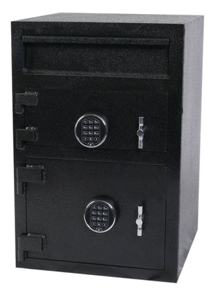 CLICK HERE to watch our video on “What to Do When Your Safe Arrives.”The Cennox MB3020-FK1 Double Door Depository Safe is an essential part of protecting valuables and businesses that have cash on the premises daily and helps to keep their cash, credit card slips, checks, and other important valuables safe from employees or unauthorized people. Users make deposits through a door at the top of the safe, and only the code holder can open the safe. Solid steel construction, anti-pry doors, and dual electronic locks help limit unauthorized access. Double-locking doors can give business owners access to the deposits via the top locked section. This way, managers or other trusted employees can only access the bottom section of the safe and not the cash deposits.