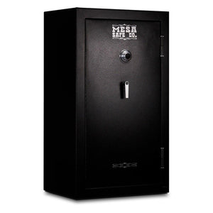 The Mesa MGL36C Gun & Rifle Safe is made of all steel and has 12 gauge steel in the body and the door. There are also six (6) 3/4" diameter chrome plated locking bolts to prevent pry attacks on the door. Along with that is heavy-duty solid steel hinges. The lock and handle are protected by an additional layer of 1/8" steel to prevent drill attacks on the door and lock. It also features a 30 minute fire rating, tested at temperatures up to 1200 degrees F on the outside. There is also a heat activated seal around the door. Mesa Safe also performed a factory test where they dropped the safe 2 stories. This means that if your safe falls two stories into a basement during a fire, the door does not pop open introducing your contents to the heat.
