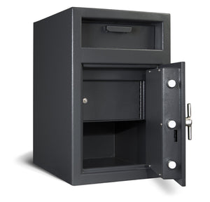 When you have a business that has a large amount of cash transactions, robbery and theft are always going to be an issue. The AMSEC DSF2516E2 Front Loading Till Storage Depository Safe is designed to alleviate these problems with a one-way deposit system for your cash, checks or even deposit bags. A store owner no longer has to be on the property at all times managing cash because this safe is designed to be extremely secure against burglary attempts. It’s also designed with the capability to hold the till from the cash register in the bottom of the safe so it can be locked up at the end of the day, yet the cash deposits are held in a separately locked upper compartment and only the key holder has access to this compartment. The dual anti-fishing baffles prevents items from being retrieved within this compartment with extendable wires or hooks.