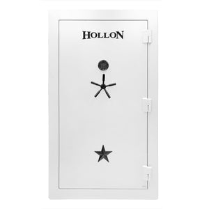 Hollon did not skimp on the fit and finish. The outside is painted with a textured charcoal finish and an upgraded chrome-plated package. Inside is ultra-plush, fully adjustable interior gun racking and one full-length top shelf reinforced with steel beams for maximum weight capacity. The top shelf is designed to accommodate long guns. There are also three removable and adjustable small shelves for additional organization. A door organizer comes standard to help keep your interior clutter-free. Hollon Safe guarantees a Lifetime Warranty against burglar & fire.