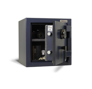 CLICK HERE to watch our video on “What to Do When Your Safe Arrives.”The AMSEC AM2020E5 45-minute fire-rated security safe is one of three models that conveniently protect your important documents, cash, and other valuables at home. The AMSEC Home Security series offers an unbeatable value, featuring a deep blue textured finish with black nickel hardware and gray fabric interior, including back-cover and firewalls.