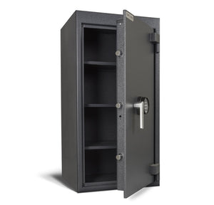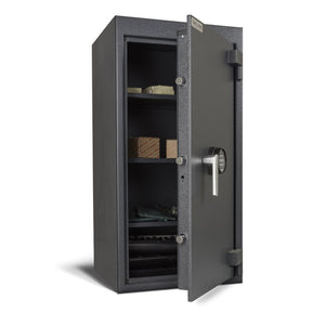 This AMSEC BWB4020 Security Safe also boasts of a 3-way locking mechanism consisting of five massive 1" diameter chromed steel locking bolts (this features goes a long way to deter physical break-ins). Another great feature of the AMSEC 40" High "B" Rate Security Safe is the bolt detent system that keeps bolts retracted when the door is open, then automatically engages when door is shut. For the commercial application, there is a convenient door mounted recessed coin rack and an extra-large capacity for storage of cash trays. The safe is painted in a black textured finish and has three (3) adjustable shelves.