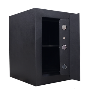 The AMSEC CEV1814 TL-15 Composite High Security Safe is painted in a dark black finish. There is 1 adjustable shelf that can be moved up or down or even removed if necessary to help with organization. This model is the smallest in the series with dimensions of 23.50" high by 19.50" wide by 21.19" deep. If you need a high security safe, consider the CEV1814.