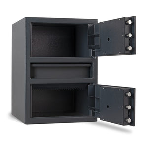 CLICK HERE to watch our video on “What to Do When Your Safe Arrives.”AMSEC's "B" Rate Money Manager Series Undercounter Two Door Depository Safes are the most effective cash handling systems available. Engineered to help you achieve total cash control.