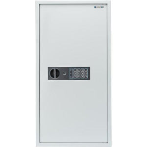 Barska's AX13350 180 Key Cabinet features all-steel construction and two solid-steel locking deadbolts for added security against pry attacks. The outside is protected by a digital keypad that can hold up to 2 pin codes. Each pin code can be 4-6 digits in length. An override key (2 barrel keys included) can be used if the batteries die, you forget your combination or something happens to the lock.
