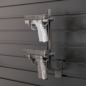 The Hold Up Displays HD66-P 2-pistol tree display is a convenient solution to your handgun organization needs. It can hold 2 pistols or revolvers of any caliber safely and provide quick access when needed. It has a protective coating to ensure your finish does not get damaged. Can be purchased for use with Hold Up Displays 3" slatwall panels or can be connected directly to your wall with the flatwall option.