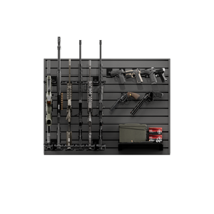 Constructed from heavy-duty aluminum Strongwall panels, the HD90 provides long-term strength without sagging or flexing. The modular slatwall design lets you arrange rifle racks, pistol holders, and accessories exactly as you want, and the system can be expanded later as your collection grows. Included pistol holders are available in both wall-mounted and in-barrel styles, providing flexible storage options for various handgun types.