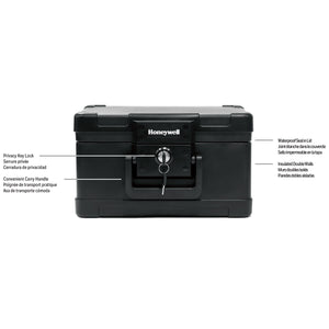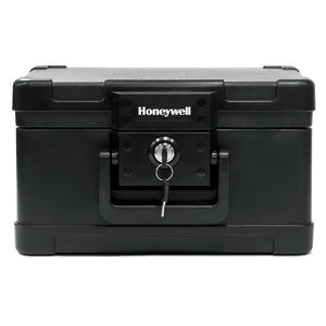 The Honeywell 1502 Small 30 Minute UL Rated Waterproof Fire Safe offers dual protection from a fire but also a flood. It is UL Certified with a 30 minute fire rating and was tested at outside temperatures up to 1550 degrees F. It is also waterproof with a 72 hour waterproof seal. This means it is verified to keep the contents dry, even when submerged 39" or 1 meter underwater.