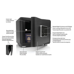 • For additional security, an optional bolt-down kit is included to secure the Bluetooth safe to a stationary surface.