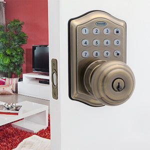 The Honeywell 8732101 Electronic Entry Knob Door Lock comes in an antique brass finish. There are 3 other finishes available as well in this same style. This entry door knob will suit a range of different doors and home decor. It will work with 1-3/8" to 1-3/4" door thicknesses with an adjustable latch that fits 2-3/8" or 2-3/4" backsets.