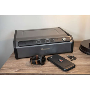 CLICK HERE to watch our video on “What to Do When Your Safe Arrives.”Hornady's Rapid Safe Keypad Vault RFID 97436 is the perfect starter for RFID technology. This allows you quick access and touch-free entry to your handguns and valuables. You can use the included decal, key fob, or adjustable RFID wristband to open the safe immediately. Other entry methods include using the push-button lock with a 4-6 digit entry code or key override.