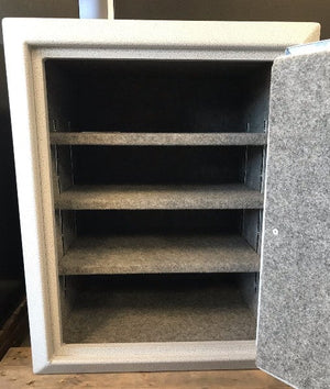 Ironman has a unique powder-coat process on the 3024 1500 Series Small Personal Gun Safe. This powder-coat paint is far superior to most paint finishes on competitors' safes. The inside has a felt lined interior, gun rack, and 3 adjustable shelves to help with organization. The felt is eco-friendly and is made with recycling plastic bottles.
