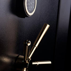There are two types of locks on the Mesa MBF6032E gun safe. There is a dial combination lock which has a 3 number combination. There is also a FREE digital electronic lock upgrade for no extra cost. This is a battery operated lock which is protected by a punch activated spring loaded re-locking device.