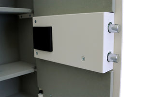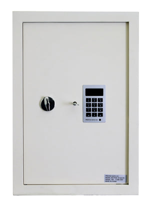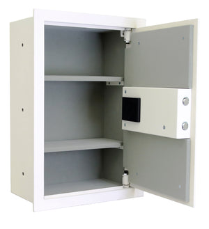 Protex PWS-1814E-FR is a burglary resistant wall safe with a digital electronic locking system. It has a heavy-duty 3/16" solid door and flange. The lock features a key override system and a power override included. Inside are two removable shelves, and the interior is velvet lined on all walls and shelves.