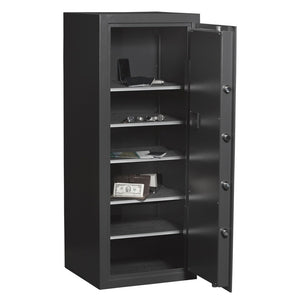 Other security features on the Protex HD-150 Security Safe include; 6 active chrome plated locking bolts 1-1/4" in diameter. There are 4 pre-drilled anchor holes on the bottom and mounting hardware included for a concrete floor to bolt this safe down. We highly recommend that you anchor this safe for additional security protection. The door is 2-1/2" thick door with 3/8" solid steel-plate to prevent pry attacks.