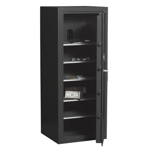 Other features include felt lined shelves, electrostatic powder-coat with fine anti-corrosion and rustproof materials applied for durability, 5 adjustable/removable shelves and a built-in LED light system to light up the interior of the safe when the door opens.