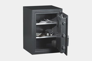 Protex's HZ-53 biometric/fingerprint safe is designed to secure your documents and valuables. This Protex Safe has a 5/16" solid steel plate door for some burglary protection. The 5 active locking bolts, 3/4" in diameter thick protect against pry attacks.