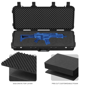 The RPNB PP-11140 Weatherproof Hard Rifle Case with Customizable Foam Insert is designed to protect rifles, shotguns, scopes, handguns and magazines. It is IP65 rated and is watertight and dustproof. It is designed to take a beating while protecting the contents from impact, moisture and microscopic dust. It is used by many military, law enforcement agencies, and hunters worldwide.