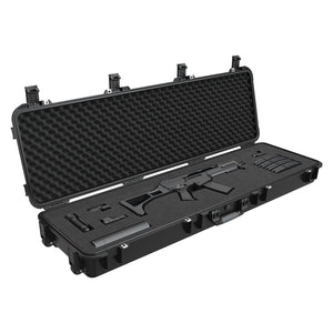The RPNB PP-12150 Weatherproof Hard Rifle Case with Customizable Foam Insert is designed to protect rifles, shotguns, scopes, handguns, and magazines. It is IP67 rated and is watertight and dustproof. It is designed to take a beating while protecting the contents from impact, moisture, and microscopic dust. Many Military, Law Enforcement Agencies, and Hunters use this gun case worldwide.