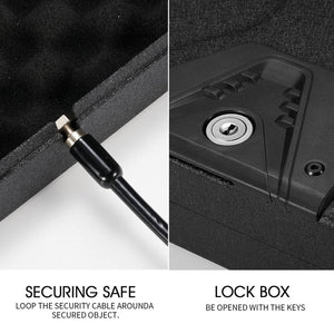 The enhanced security features of the RPNB RP2001 include a key lock crafted from sturdy Zinc Alloy, providing an additional layer of security. The included 3.2-foot security cable adds further protection, withstanding up to 1,900 pounds of force to prevent unauthorized access. Two backup keys to open the safe are also included.