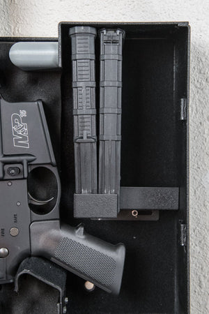 Shotlocks AR 200M Solo-Vault can be mounted either vertically or horizontally depending on the location. It features an interior shelf for two additional 30 round magazines. There is also a flanged no-pry lid and dual locking interior hooks. Shotlock includes a 2 year limited warranty with each purchase.