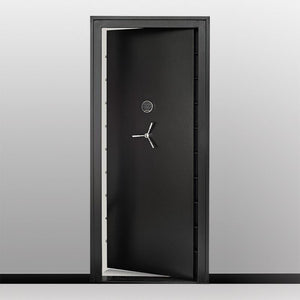 With the SnapSafe Vault Room Door 36”, firearms can be stored on walls or stacked in the open along with accessories, ammunition, and other supplies behind the vault door. The larger secured space allows for an open and visual layout to inspect, organize and augment your supplies and safety plan. The vault room door features a 12 gauge door and door frame, nine 1” live locking bolts and comes with the SecuRam digital lock with a keyed backup.