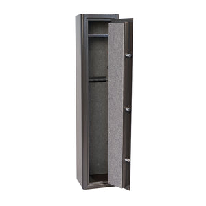 CLICK HERE to watch our video on “What to Do When Your Safe Arrives.”Long gun storage at home is important, especially if you have children. For an affordable gun safe for up to four long guns, the Sports Afield SA-HDFX-BIO Home Defense Long Gun Safe is the perfect safe. It will give you quick access with the integrated biometric handle that will store up to 100 fingerprints. It also has a fail-safe backup key in case something happens to the lock or you need to change the batteries.