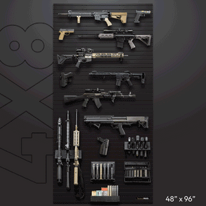 Build your own Tactical Walls Modwall. You can use these to stage your firearms and other equipment in your gun room, man cave, closet, or garage. Select the quantity you need and the options that best fit your needs. Each panel is 22.00" H x 48.00" W. Multiples can be hung side by side, one above the other, or separately. It's all up to you. Each panel is made of HDPE plastics, durable enough to hold your gear while protecting your finishes.