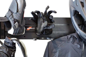 Included in the Tactical Walls MWS Motorcycle Package is one panel which can be installed in a garage, bedroom, shop, or anywhere that you want to hang and store your gear. There is a headwear mount for a helmet, an MWS Hanger for a shirt or jacket, a shoe mount for your shoes, one pair of glove mounts, a pump mount, a hook, and 1 MB1 and 3 MB2 adapters. There are 6 drywall screws for easy installation into a wall.