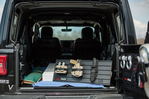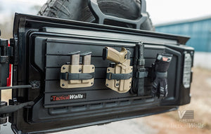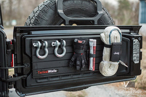 Do you own a Jeep TJ, JL, JK, and/or Rubicon model tailgate and wish you could have better organization in the back? The Tactical Walls VMod Jeep Package allows you to upgrade your tailgate to hold items such as firearms, necessary tools for your job, or other items you want to keep organized. This package will fit most Jeep TJ, JL, JK, and/or Rubicon models. We recommend that you verify measurements to make sure the VMod Jeep Package will fit before purchasing.