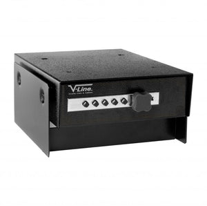 V-Line's 2597-S Desk Mate is designed to be mounted under a cabinet, desk, or shelf. You can easily and quickly open this safe with a reliable combination lock. It is 100% mechanical which means you never have to worry about batteries or losing a key. There are 5 buttons and 1081 possible combinations which means it will be very hard for someone to "guess" your combination. You can set a custom combination yourself at any time for peace of mind.