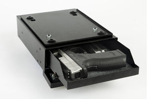 The door opens from the front which allows you to quickly enter your combination, pull out the tray and grab your pistol in the event of an emergency. There is a felt-lined tray to prevent scratches or damage to your pistol. The outside of the V-line 2597-S is painted a textured semi-gloss black powder coat finish for a lifetime of use. It is accented with a gold-tone pinstripe and V-Line logo. The Desk Mate is 100% made in the USA.