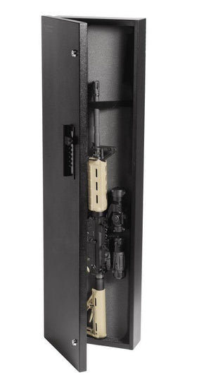 The V-Line 31242-SA Rifle Case can be hidden in a closet or behind a door. This way it is concealed but can be accessed quickly when needed. This case can be mounted in either a horizontal or vertical position depending on your needs. There are pre-drilled 1/4" anchor holes in the back to secure to a solid surface. The outside is built with 16-gauge steel. It is lined with foam to prevent scratches or damage to your rifle. The outside is painted with a textured low-gloss black finish for a lifetime of use.