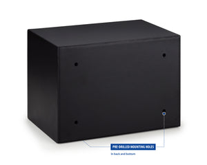 • 4 pre-drilled holes in the back and the bottom to bolt to a solid surface.