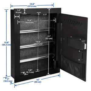 CLICK HERE to watch our video on “What to Do When Your Safe Arrives.”The Viking VS-52SX Mechanical Hidden Wall Safe with Simplex Lock in Black allows you to securely store your valuables and keep them hidden in the wall. This safe is equipped with a Simplex mechanical pushbutton lock which ensures maximum security without the need for batteries. With a proven track record of reliability over several decades, the Simplex pushbutton lock guarantees peace of mind.