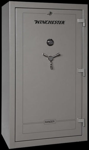 The outside of the Winchester Ranger 44 Gun Safe is painted a durable powdercoated gunmetal gray or black finish. A 3-spoke black, chrome vault handle is standard. Inside is a single power outlet to plug in items such as a light kit, dehumidifier rod or other accessories. Adjustable shelving system gives you easy-access to your rifles. Collector barrel racks are also standard with auxiliary shelves for interior customization to fit your storage needs.