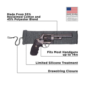 CLICK HERE to watch our video on “What to Do When Your Safe Arrives.”The Allen 1314 Knit Handgun Sock is your pistol's ultimate guardian. Built from silicone-treated polyester fabric, this 14" handgun sock is engineered to resist moisture buildup, shielding your firearm from rust and pitting. Its drawstring enclosure ensures a snug fit for handguns up to 14". It's perfect for travel or safe storage.