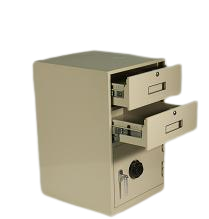 Cash handling is important to any business, especially financial institutions with cash. The Fenco 620 Lowboy Pedestal Unit with 2 Box Drawers allows you to place this under the counter and meets ADA requirements. It also has a bottom compartment that is a 1/8" thick full locker behind a 1/4" steel plate door. The locker has 3-point boltwork, a Group 2 mechanical spyproof combination lock, and a key locking L-handle. It has a key locking L-shaped handle for opening and closing the door. This pedestal unit is 27.88" high by 18.00" wide by 19.00" deep and is used for cash storage options behind teller lines. The top 2 box drawers have a key lock with two keys each.