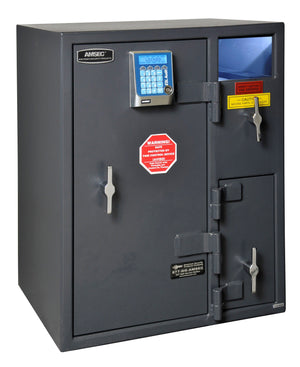 There are many security features on the AMSEC RMM3214ESLAudit-R 2 Door Cash Management Safe that make it an asset to your business. The doors are both constructed of solid 1/2" steel. This is designed to protect against a pry attack on the door. The lock and relocker are protected by a large carburized hardplate. This is designed to protect against drill attacks. The locking system on the large compartment has 3 - 1" chrome-plated locking bolts that prevent someone from easily prying open the door. You want a door that fights back.