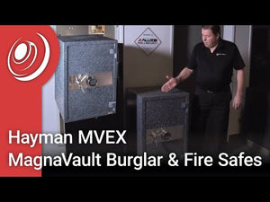 CLICK HERE to watch our video on “What to Do When Your Safe Arrives.”NEW for 2015, the Hayman MVEX-2116 MagnaVault has been redesigned and loaded with some great features. It offers the perfect protection for both residential and commercial applications where valuables need to be protected from both burglary and fire. This MagnaVault series safe features a 105 minute fire rating, tested at outside temperatures of 1275 degrees F for 105 minutes. The inside temperature never exceeded 350 degrees F. There is also an intumescent door seal that swells at high temperatures to seal the door from fire and smoke.
