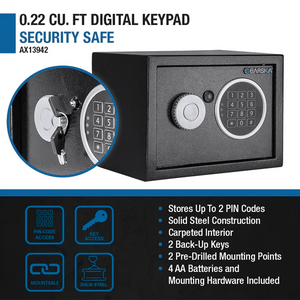 CLICK HERE to watch our video on “What to Do When Your Safe Arrives.”The Barska AX13942 Digital Keypad Security Safe is a compact yet robust solution for your dorm room, office, or closet needs. With outside dimensions of 6.70" in height, 9.10" in width, and 6.70" in depth, this safe maximizes security without occupying a large space.