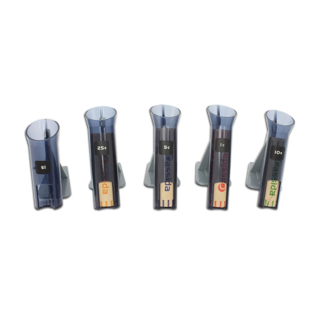 The Cassida C200 Business-Grade Electronic Coin Sorter, Counter, and Roller is the ultimate solution for businesses managing high volumes of coins. This efficient machine can automatically count and sort your coins at an impressive speed of up to 300 coins per minute. It simplifies the process by allowing you to insert coin wrappers directly into the coin tubes, making rolling coins quick and effortless.