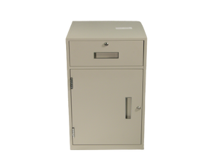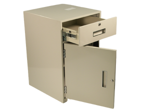 CLICK HERE to watch our video on “What to Do When Your Safe Arrives.”Cash handling is important to any business, especially financial institutions that have cash on hand. The Fenco 603 Lowboy Pedestal Unit with Locking Box Drawer allows you to place this under a counter and meets ADA requirements. It is 27.88" high by 18.00" wide by 19.00" deep and is used for cash storage options behind teller lines. The outside door is locked by a key lock. The top locking box drawer is also locked by a key lock.