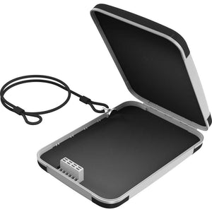 For peace of mind on the go, the lock box features a dual 4-digit TSA-approved combination lock with 10,000 programmable code options, providing advanced security and hassle-free clearance at airport checkpoints. To keep it firmly in place, a 1,500-lb rated cable with a patented connector is included, allowing you to lock it to stationary objects with confidence.