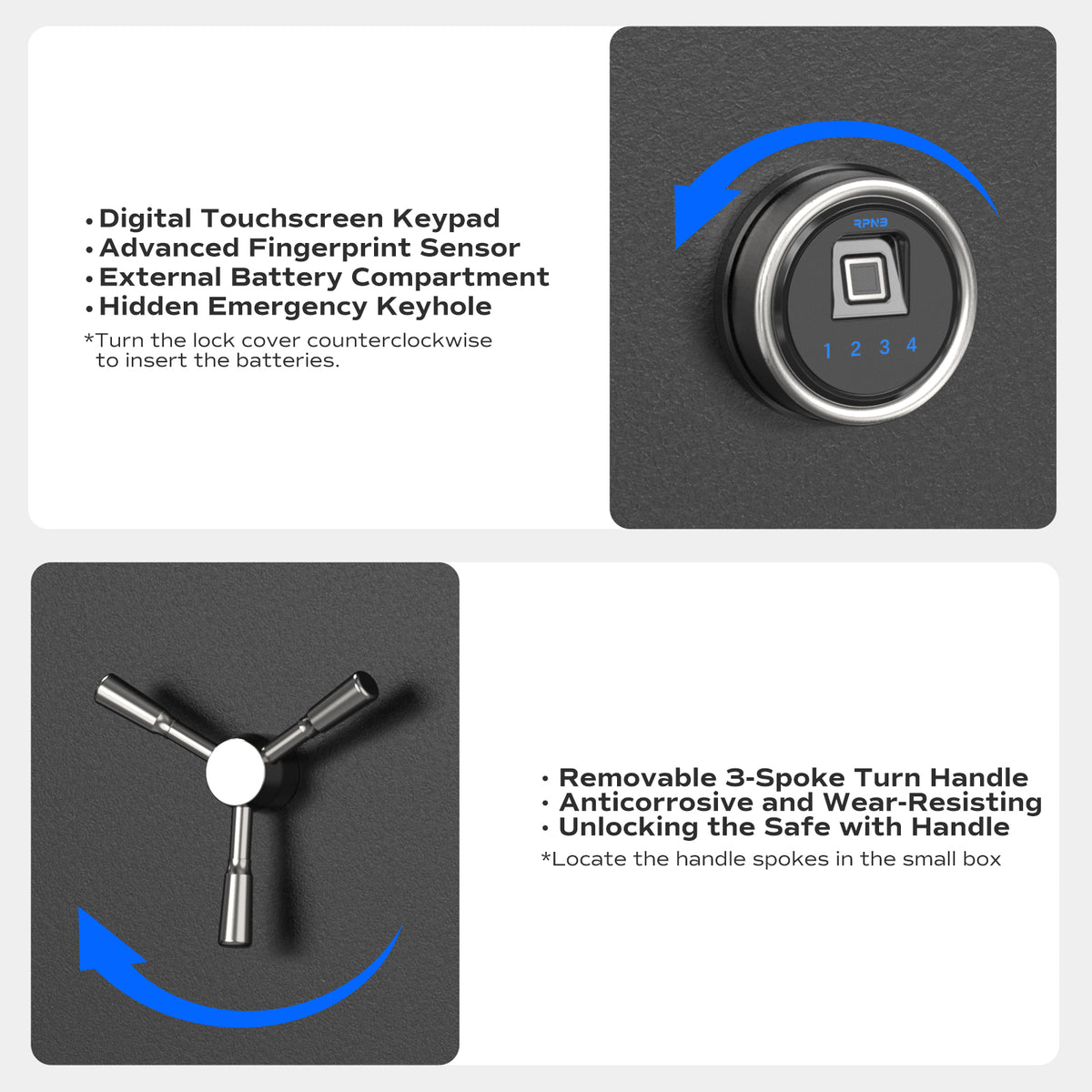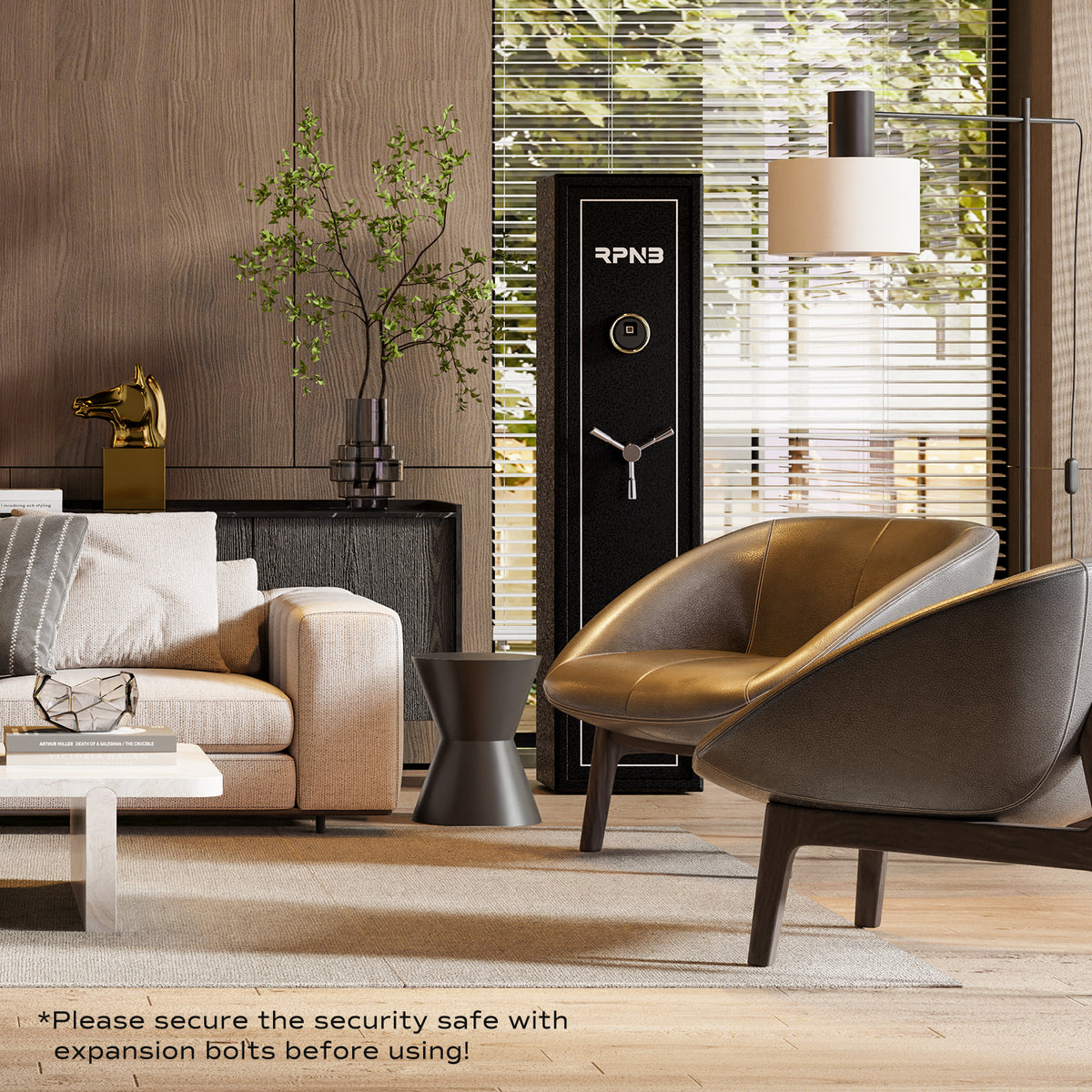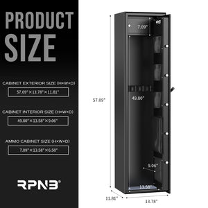 CLICK HERE to watch our video on “What to Do When Your Safe Arrives.”The RPNB RP5FR Biometric Large 5 Gun Cabinet with Electronic Digital Lock is a must-have for gun owners seeking security and accessibility. Constructed with 14-gauge carbon steel, this safe is built to last and resist unauthorized access. With a larger and deeper capacity, this safe can store up to five rifles with or without scopes.