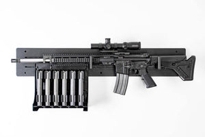 If you have limited wall space but still want to display and have your rifle at the ready, the Tactical Walls MidMod Rifle Display Package is the ideal solution. This display package can also hide your firearm and magazines in a closet. Add the optional ModWall Mag Rack Holder (shown in the pictures) if you would like to keep your filled magazines and rifle in close proximity to each other.