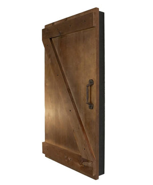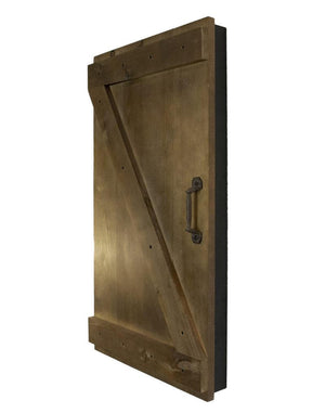CLICK HERE to watch our video on “What to Do When Your Safe Arrives.”Do you like the rustic look of a barn door? Why not hide your handguns and valuables behind the look of a nice looking vault door. The Tactical Walls Mini Barn Door Concealment features a magnetic lock to open. It comes with 2 large retention magnets. It is wall surface mounted so there is no need to cut a hole in your wall. It will just mount directly to the wall.